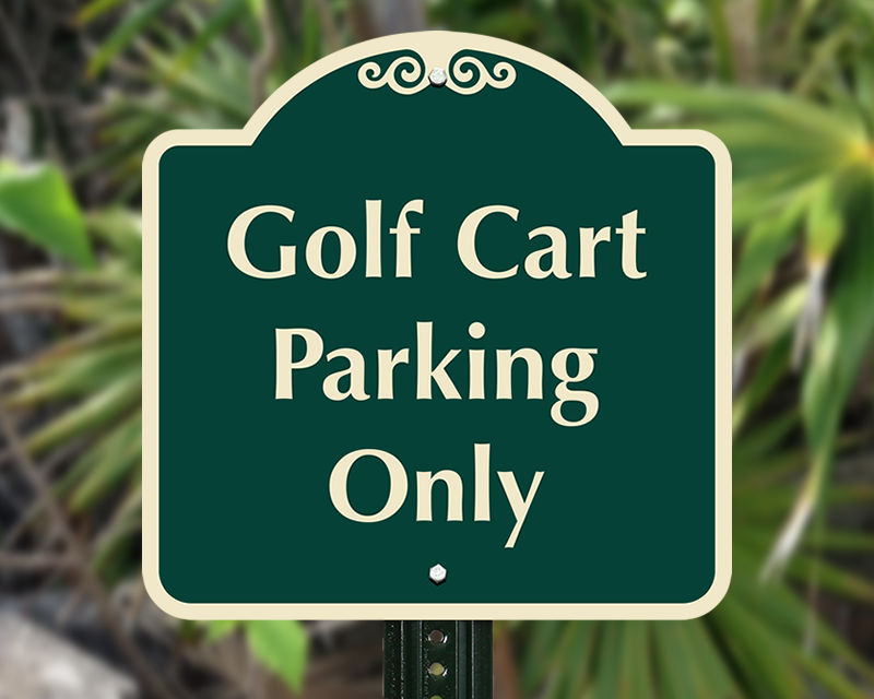 signature parking signs are distinctively shaped signs (often arched or oval) that add a decorative, upscale look to a property. The 18-inch size is ideal for driveways, country clubs, and residential communities where aesthetics matter as much as the message.