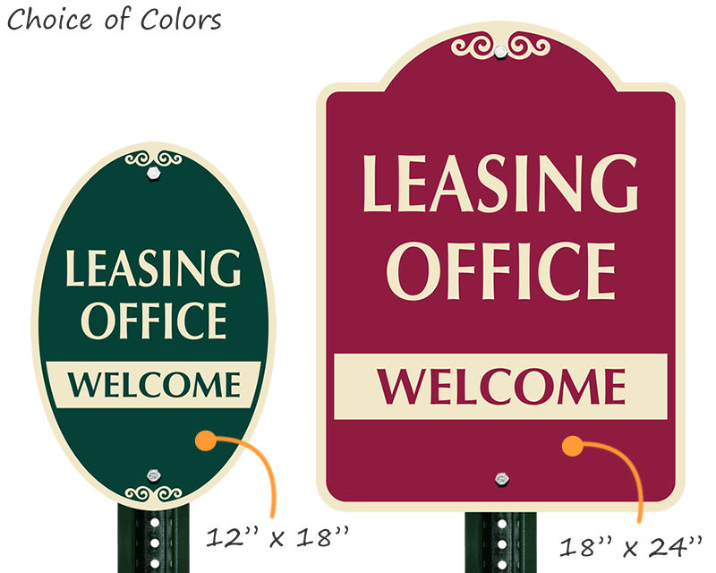 A polished Leasing Office Sign ensures that you'll impress future residents. Materials won't clash with your office and help you welcome visitors and guide them around the building.