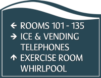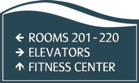 • • Raised white characters and Grade II Braille for permanent room signs are ADA compliant.