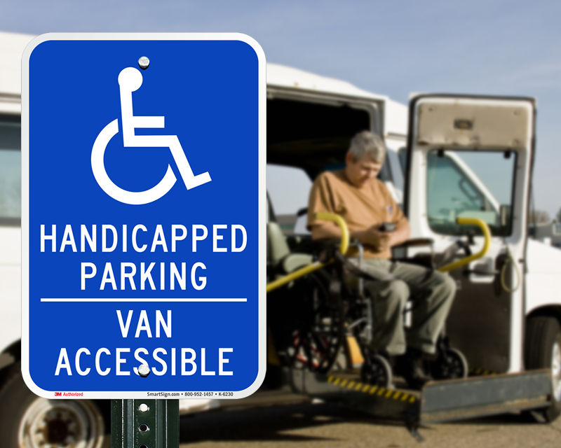Each van accessible parking space needs a sign that features the ISA (International Symbol of Access) icon for handicap parking and the words “Van Accessible.” This must be installed on a post, wall, or fence, as long as it is at least 60 inches (ADA Chapter 502.6) off the ground. You can choose the option of using a main sign plus a supplemental sign or it’s a little cheaper to have all the information on one Reserved Parking Van Accessible Sign. Make sure to check with your state or local authorities for any specifics.