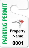 Our Apartment Parking Permit Hang Tags feature mirror cut-outs and are designed for a variety of rearview mirrors. You may simply loop the tags over your rearview mirror and be assured that these will still be in place unless moved deliberately.