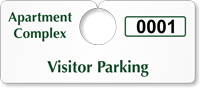 Our Apartment Parking Permit Hang Tags feature mirror cut-outs and are designed for a variety of rearview mirrors. You may simply loop the tags over your rearview mirror and be assured that these will still be in place unless moved deliberately.