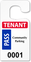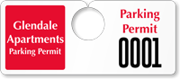 Our Apartment Parking Permit Hang Tags feature mirror cut-outs and are designed for a variety of rearview mirrors. You may simply loop the tags over your rearview mirror and be assured that these will still be in place unless moved deliberately.