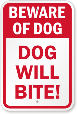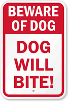 Beware Of Dog Sign: Dog Will Bite Sign K-9426 Learn More...