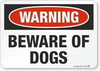 You may also want to think about the sign material. Our beware-of-dog signs are available in plastic, standard and superior grade reflective aluminum, vinyl, and as adhesive labels.
