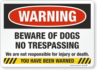 Beware-of-dog signs can certainly deter visitors from exploring your property uninvited. While a general sign does a good enough job of discouraging trespassers, a warning conveyed using stronger words and tone can deter even the more persistent kind.