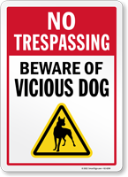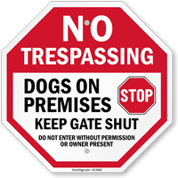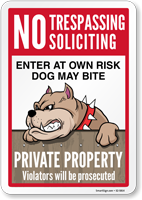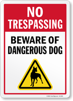 We also offer signs that combine the dog warning with the no-trespassers, no-solicitors message.