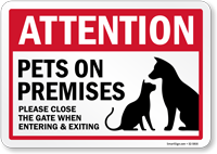 In addition to beware-of-dogs, we also offer beware-of-cats signs as well as signs that convey a warning about both cats and dogs. You can hang these signs on your door or put them up in your garden, entrance, yard, etc.