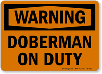 You may also want to think about the sign material. Our beware-of-dog signs are available in plastic, standard and superior grade reflective aluminum, vinyl, and as adhesive labels.