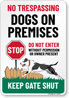 We also offer signs that combine the dog warning with the no-trespassers, no-solicitors message.
