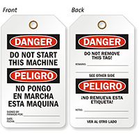 Reach a broader audience with Bilingual Lockout Tags. Our comprehensive selection of bilingual messages helps your Spanish and English speaking staff understand a vital message in no time. Find the perfect double-sided tag with a design that commands attention and meet your workplace requirements. Photo Lockout Tags feature a box to put a photo and self-lamination feature for protection against abuse. Bold text, striped borders, and colors can be seen from a distance.