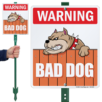 Easily install LawnBoss® Beware of Dog Signs on your lawn with a hammer. Remind your neighbors and warn potential burglars that your property is protected by a trustworthy dog.