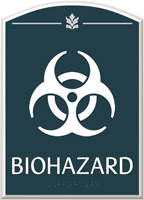 This elegant Biohazard sign boasts decorative raised text and graphics, with Grade Two Braille.