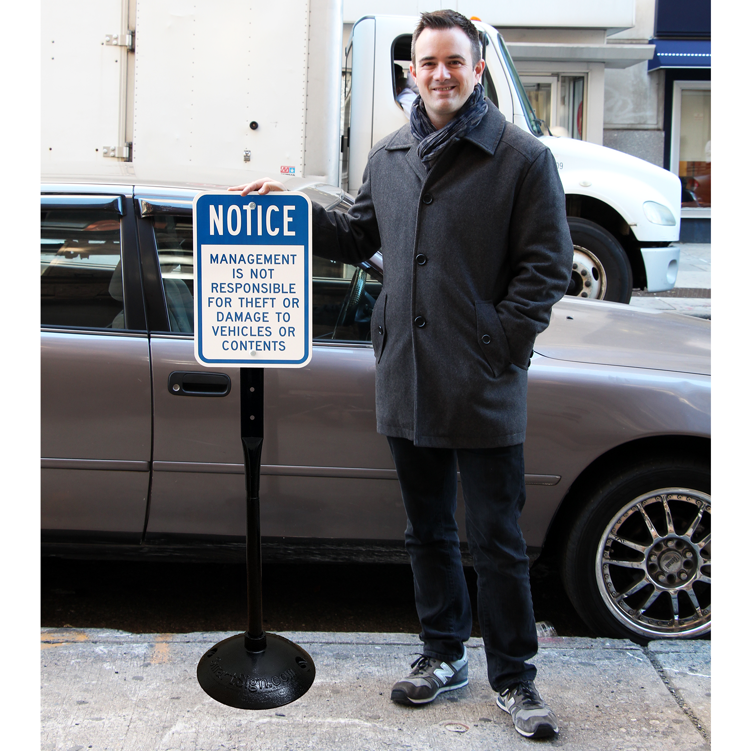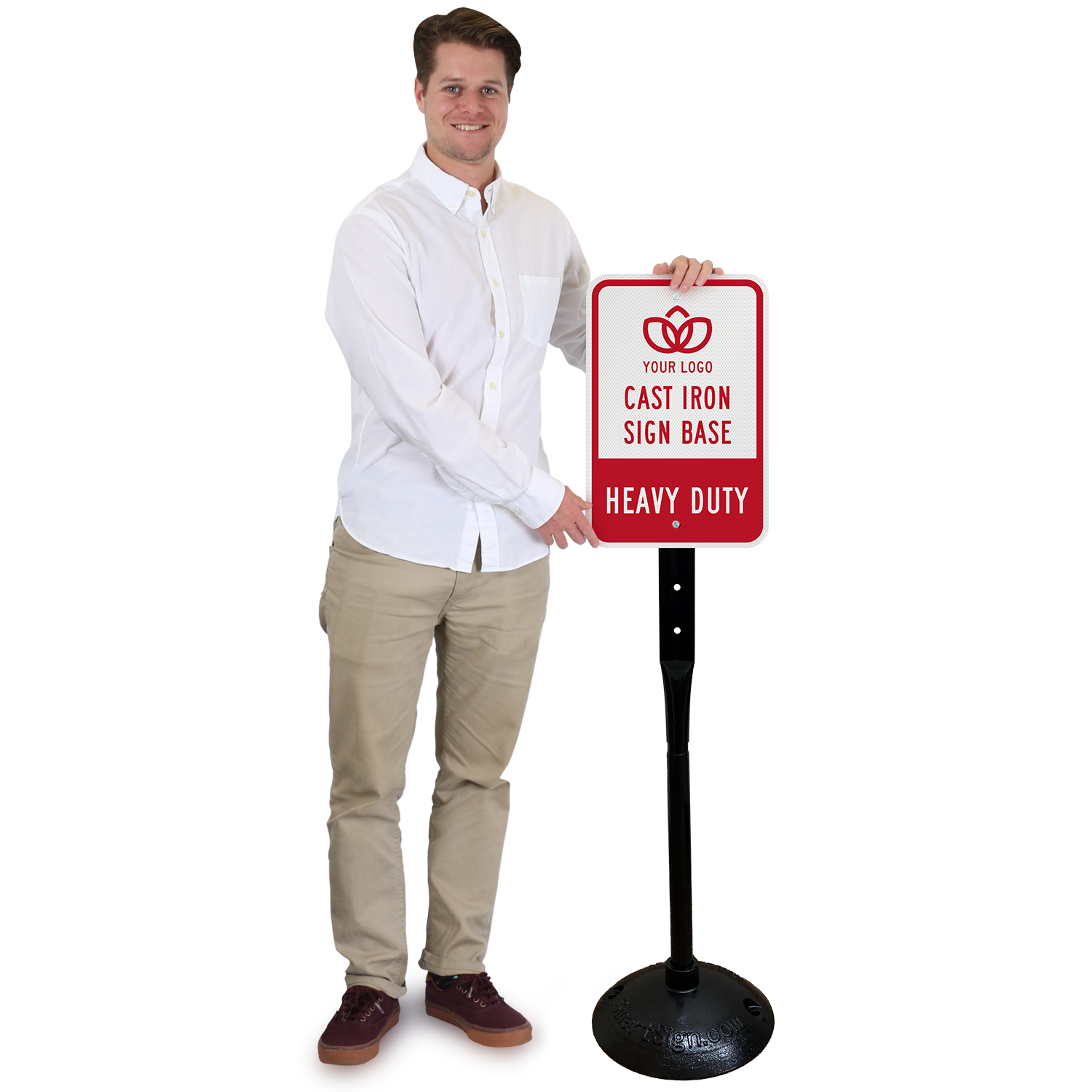 - Durable, portable, cast iron, 14-inch diameter base works in all kinds of outdoor conditions. Put your sign where will have the most impact.