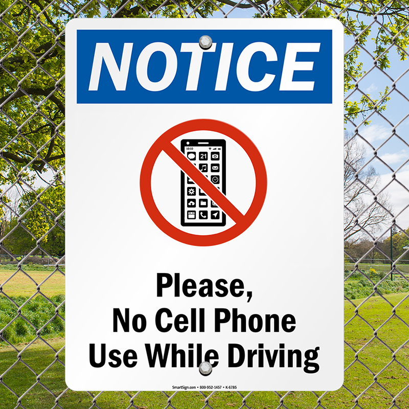 Cell phone Sign: Notice - Please, No Cell Phone Use While Driving (with Graphic) K-6785