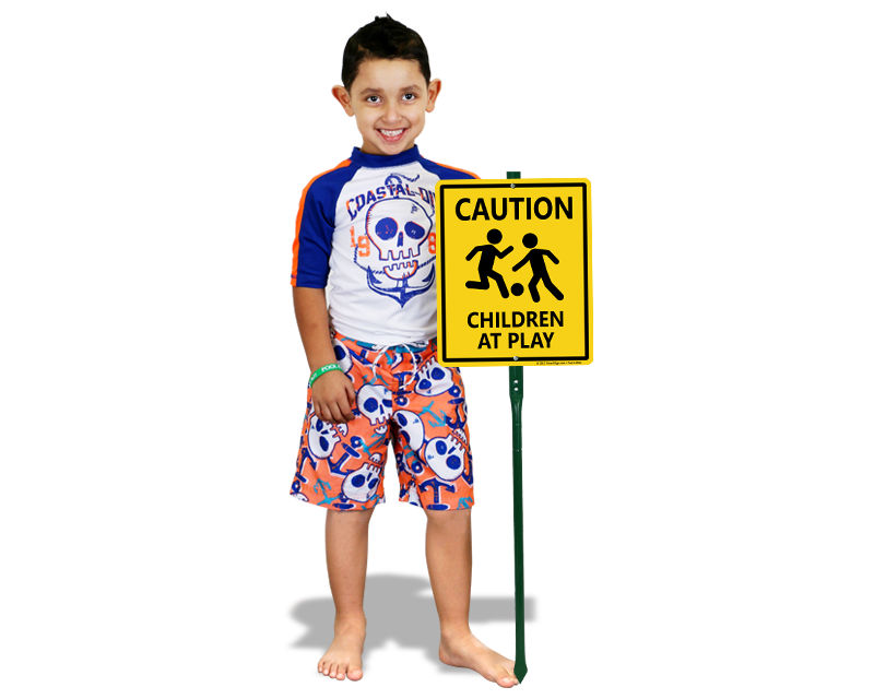A child at play sign kit provides an all-in-one solution for installation. It typically includes a high-visibility, heavy-duty sign (like one from our caution children signs collection), a sturdy steel sign post, and all the necessary mounting hardware (bolts, nuts, and washers) to securely attach the sign to the post. This eliminates guesswork and ensures you have compatible components for a proper setup.