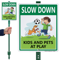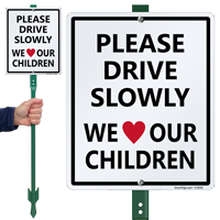 Don't have a fence to post your sign? Use our child at play signs, now with a helpful sign kit, to let your signs stand on their own.