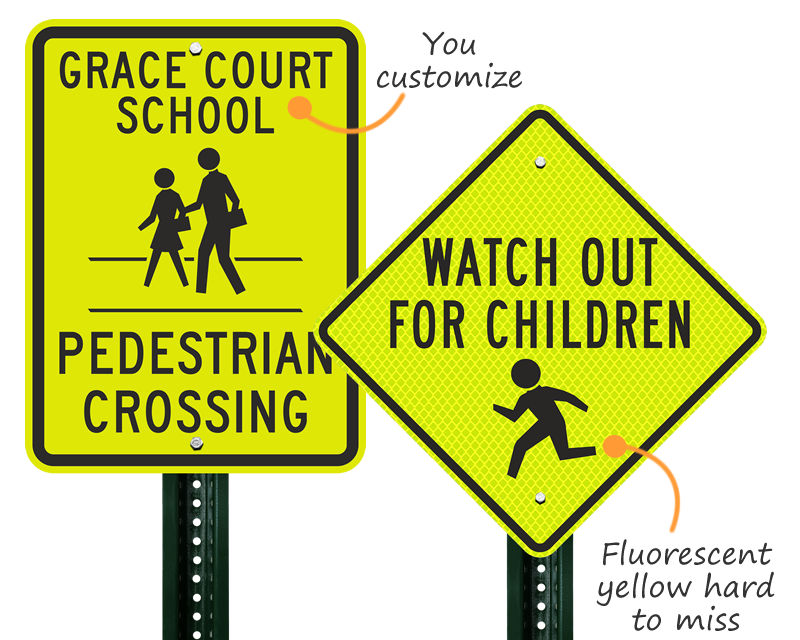 Kids are taught to look both ways before they cross the street. Make sure motorists do too with our eye-catching signs.