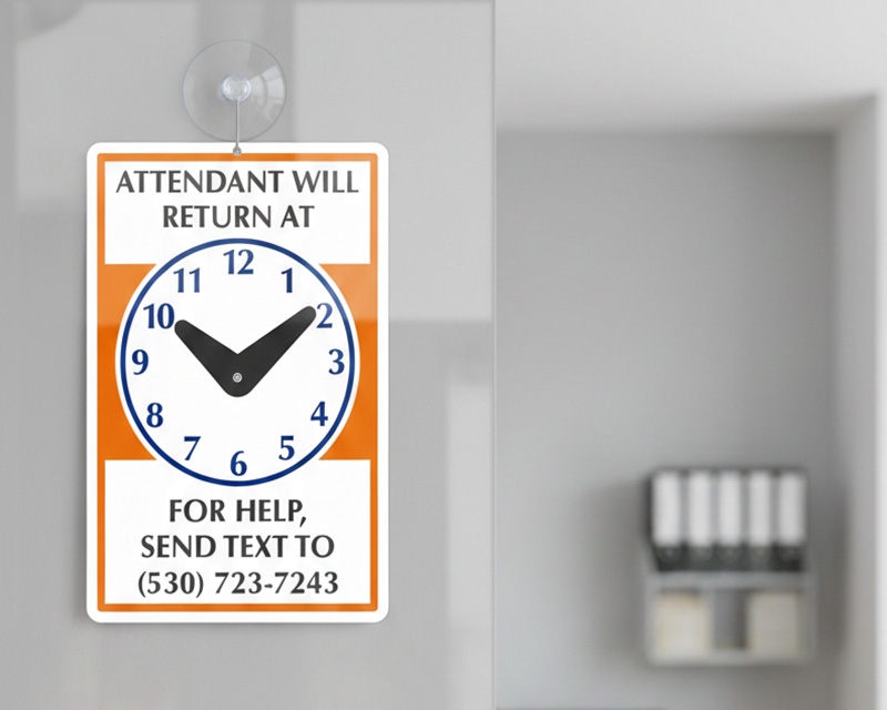 "will return at" clock signs reduce customer frustration and no-shows by 30-40% by providing specific return times, preventing customers from leaving due to uncertainty about wait duration.