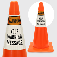 Yes. Our cone message collars are made from durable materials that hold up in outdoor conditions, making them suitable for parking lots, construction sites, loading docks, and outdoor event areas. Paired with standard orange traffic cones, they create highly visible, informative warnings that communicate the specific hazard or restriction beyond what a bare cone conveys on its own.