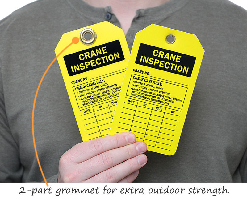 • • Crane Inspection tags are offered in an array of materials designed to accommodate different environments and industries.