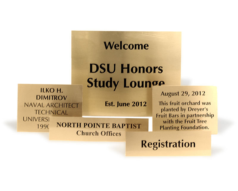 We use the best material and engraving techniques for our line of professional brass nameplates. We make these eye-catching signs in two thicknesses -- heavy, durable Bugle and sleeker Cymbalic -- and in a wide range of sizes.