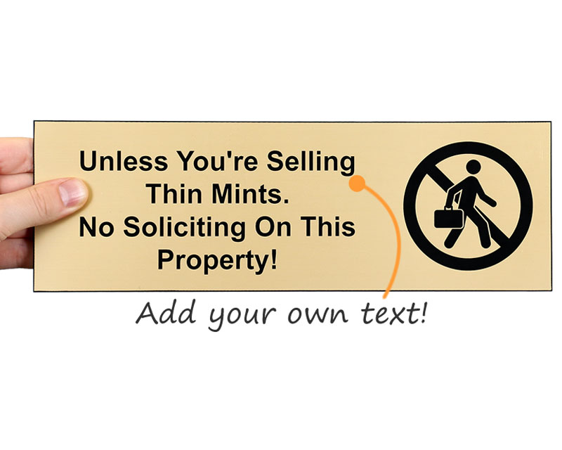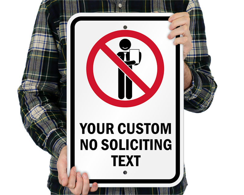 Custom No Soliciting Signs can help you get rid of those unwanted solicitors constantly ringing your doorbell or annoying the receptionist to meet you. Personalized content will address your specific requirements and hit the right audience in a targeted way.