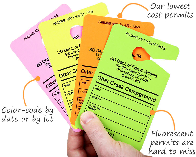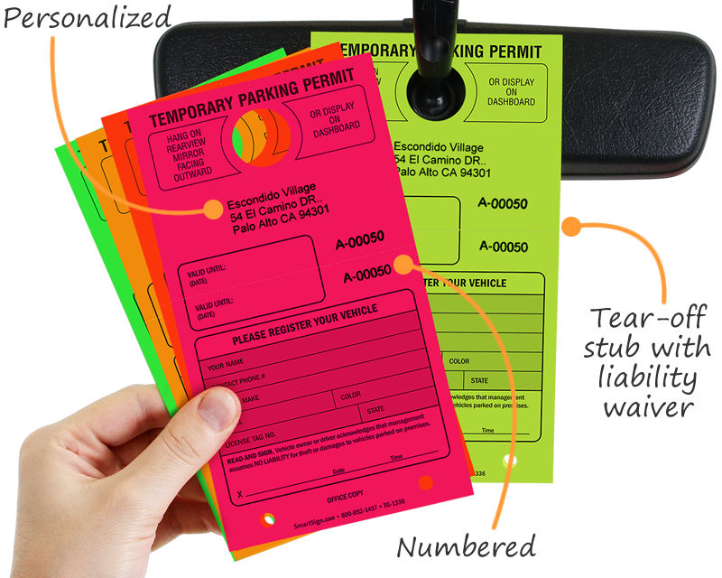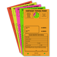 Hard to miss these temporary paper parking tags. Make enforcement easy. Fluorescent visitor passes are seen 75% faster than standard colored tags.