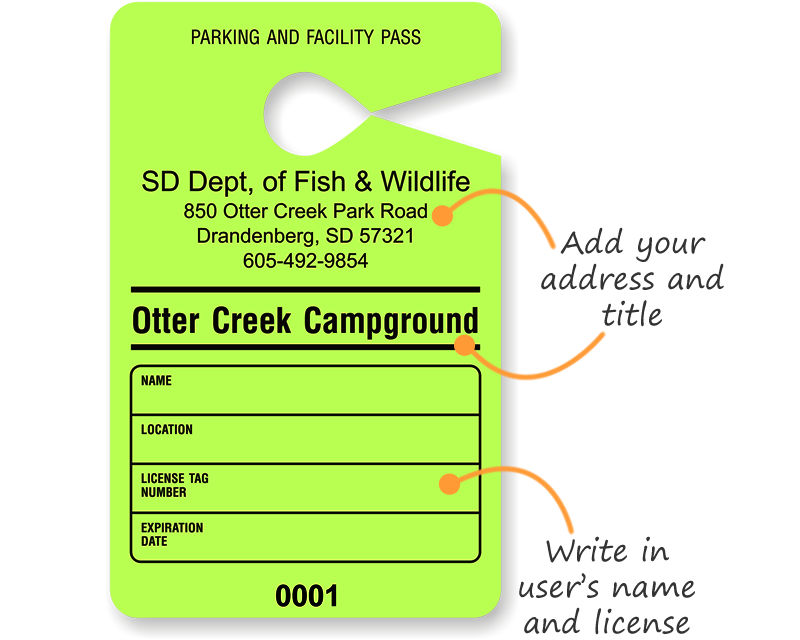• • Back of tag shows important waiver of liability – you are not responsible for accidents or thefts in your lot.