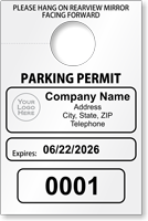 Our temporary parking passes are commonly available in sizes 5.5" x 3.5" and 7.75" x 4.25". These dimensions are ideal for hanging from a rearview mirror, ensuring high visibility for easy identification and efficient parking enforcement.