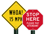 Absolutely. Our custom diamond signs and octagon signs (found within custom stop signs) are designed to mimic standard traffic signage shapes, making them instantly recognizable for regulatory messages.
