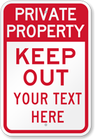 Whether you're a hermit or just protecting your land, relax as Custom Private Property signs protect your surroundings. Add your own text for the perfect, personal message.