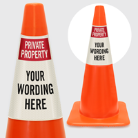 Size: 8" x 15" Material type: Custom Reflective “No-Tip” Traffic Cone Sign - Two Sides Printed