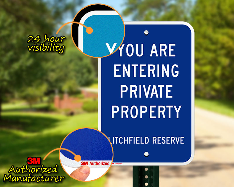 Made from 80 mil thick aluminum with a 3M High Intensity (HIP) reflective surface, our designer custom reflective signs easily last for over seven years. These come with pre-drilled, pre-cleared mounting holes that facilitate hassle-free installation.