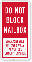 Do not park between this sign and my mailbox! Do Not Block Mailbox signs give illegal parkers a heads up, so you don’t have to confront them yourself.