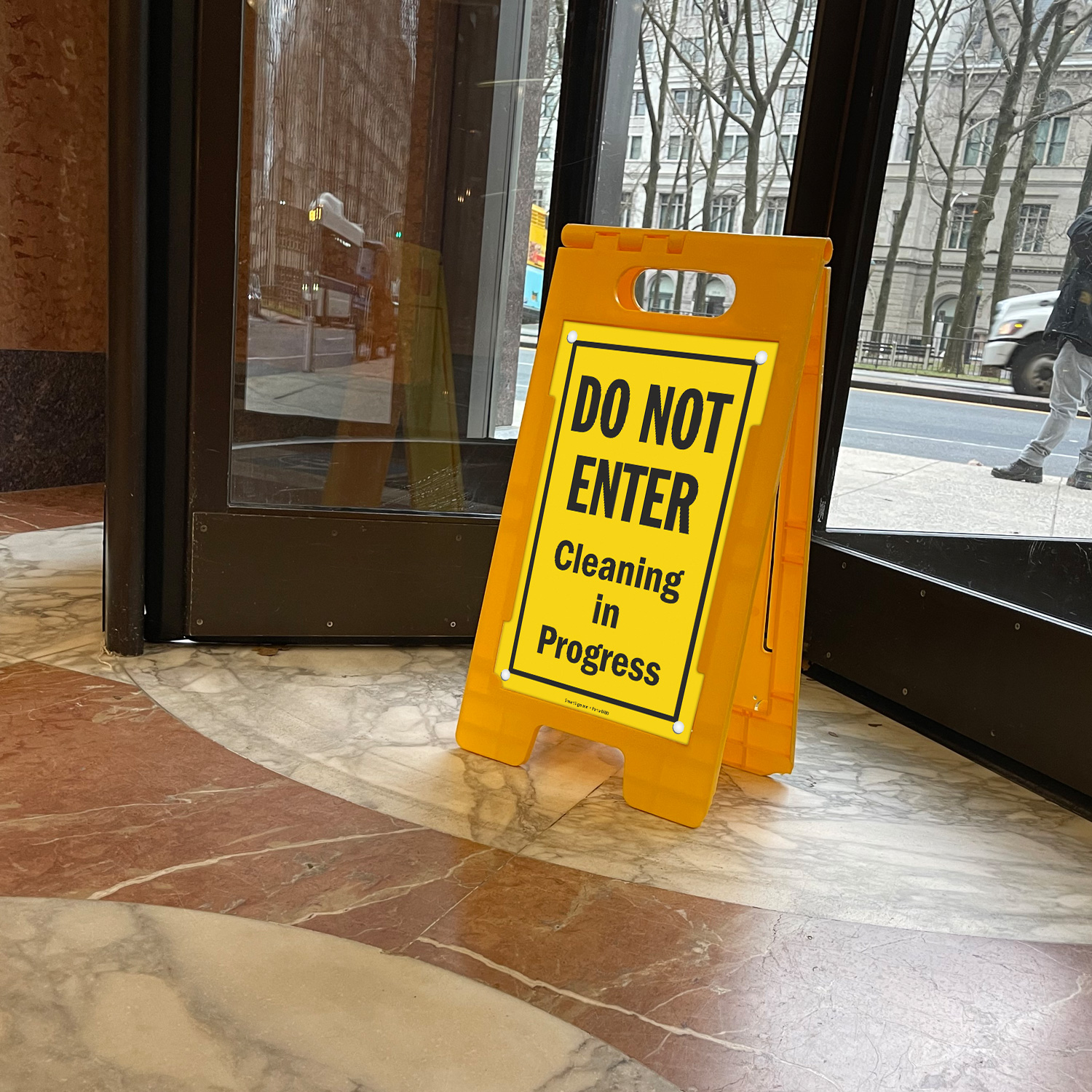 Easily place this portable Do Not Enter Floor Standing Sign wherever cleaning is in progress in your facility.