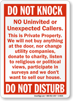 Need some private time? Install do not knock signs on your front door to send an obvious message to solicitors, guests, or family members, and maintain security on your property.