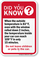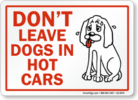 Leaving an animal in a confined vehicle is not only inhumane but also illegal in some states. Dogs in hot cars warning signs remind pet owners and caretakers not to risk their pet’s life by leaving them inside parked cars- even as they “crack open a window.”