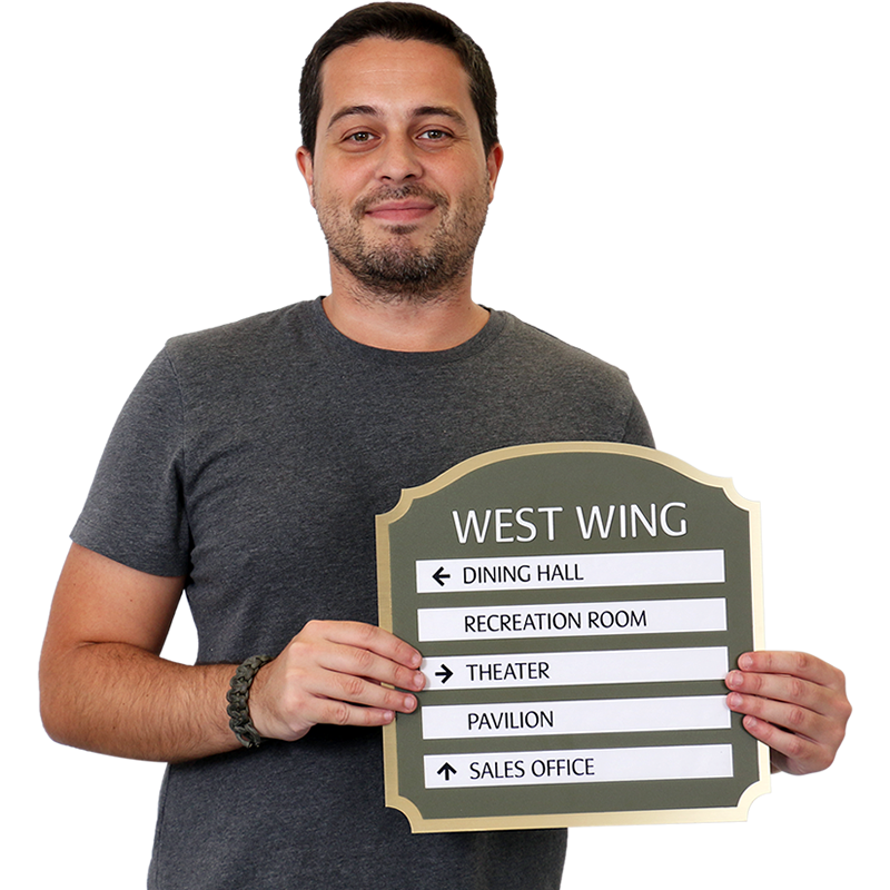 Type your sign text over the sample text shown. When appropriate, we automatically display the corresponding Braille text. There may be a limit on maximum characters in a line.