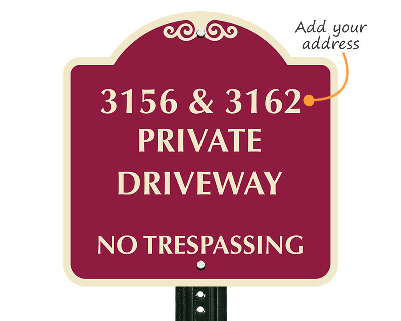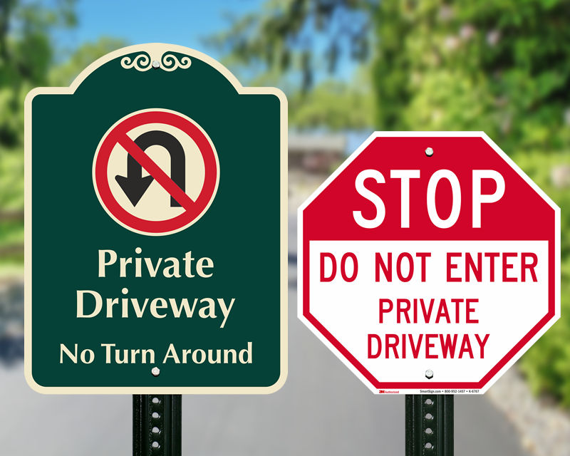 Private road signs are extremely useful as these tell people that the road or driveway is not meant for general public use, thereby implying that a violation can amount to trespassing on private property. These signs communicate your property rules and help prevent crowding, turn-arounds, and unauthorized parking on your property.