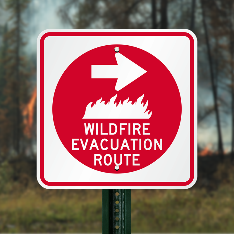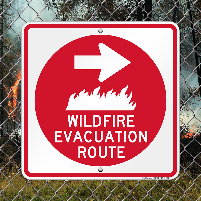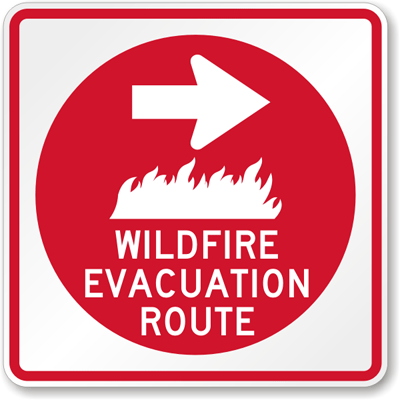 Evacuation Sign: Wildfire Evacuation Route, Right Arrow K-4159 Learn More...