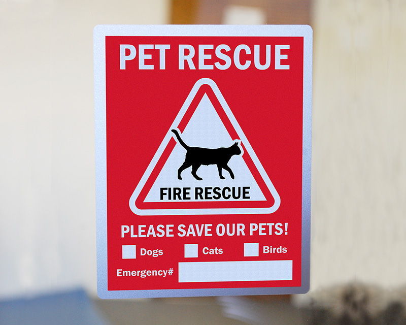 No one wants to think about preparing for an emergency situation, but in case of emergency you will never regret thinking ahead. In case of fire, pets can't fend for themselves and need to be taken or let out by people. In the event that you are not home during an emergency or are forced to evacuate before you can bring your pet, make sure you have a clear In Case of Emergency Sticker or In Case of Emergency Sign. Your cat, dog or bird will never be forgotten.