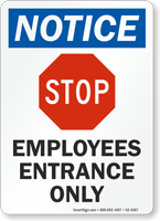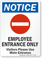 Our Employee Entrance Signs and Employees Only Signs allow you to keep your facility or workplace safe and secure, as well as limit your liability.