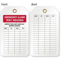 • • Equipment Inspection Tags feature pre-printed text on both sides which include inspection and maintenance logs, checklists, or warnings and hazards. In addition, they include blank spaces for the inspecting employee to sign – confirming that the equipment has been checked.