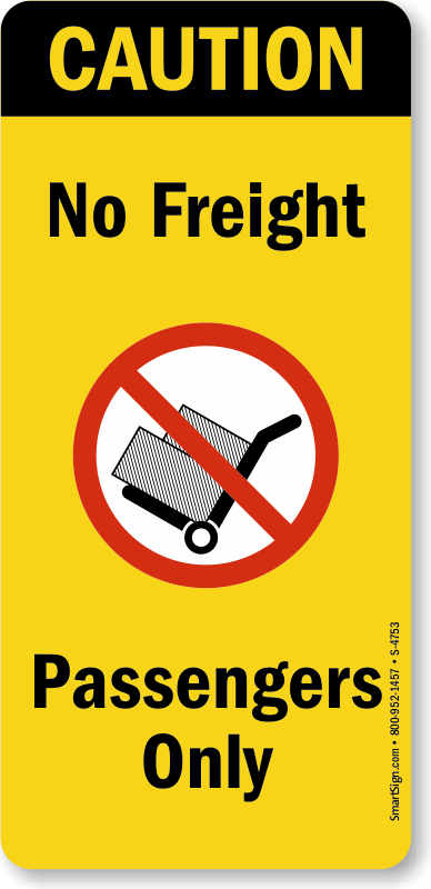 Use a "no freight passengers only (with symbol)" sign. A sign helps you improve safety.