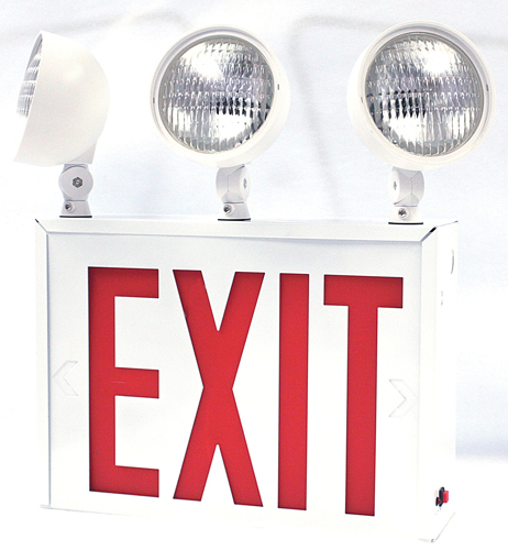 New York-Approved LED Exit Sign with Emergency Lights, Single Face, Red letters and Three Lamp Heads