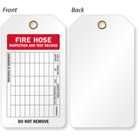 Don't fall behind - put an easy-to-use Fire Hose tag to mark your periodic inspections. Comply with vital fire hose inspection criteria with a durable, long-lasting fire hose inspection tag, complete with all the fields you need to check for an inspection. Fire Hose Inspection Tags are required on every hose apparatus. Each 15 mil thick, heavy duty plastic tag is reusable and tear-resistant.
