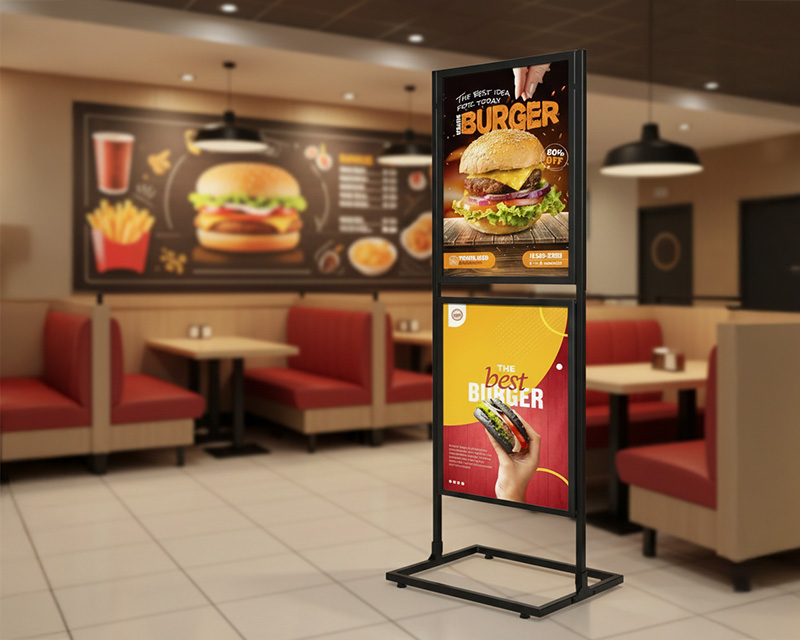 Our floor standing sign holders provide a professional and reliable way to display posters and signage in high-traffic areas. Designed for stability, visibility, and easy graphic changes, these freestanding displays are ideal for retail stores, offices, lobbies, events, and public spaces.