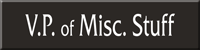 Say it with style and humor with this 'VP of Miscellaneous Stuff' engraved Desk plate. Designed to attract attention, and show unauthorized job titles. Constructed to last for several to come.