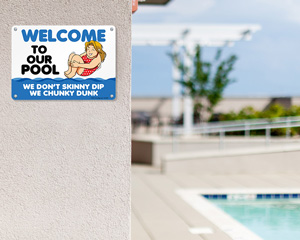 • • Our Funny Pool Signs feature witty phrases and amusing graphics that will make your guests smile and create a lively atmosphere. You can even use them as Novelty Pool Signs for gifting purpose.